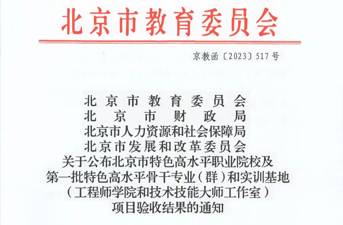 喜报 | 学院获得北京市职业院校“促创新、补短板分类提升计划”评比二等奖