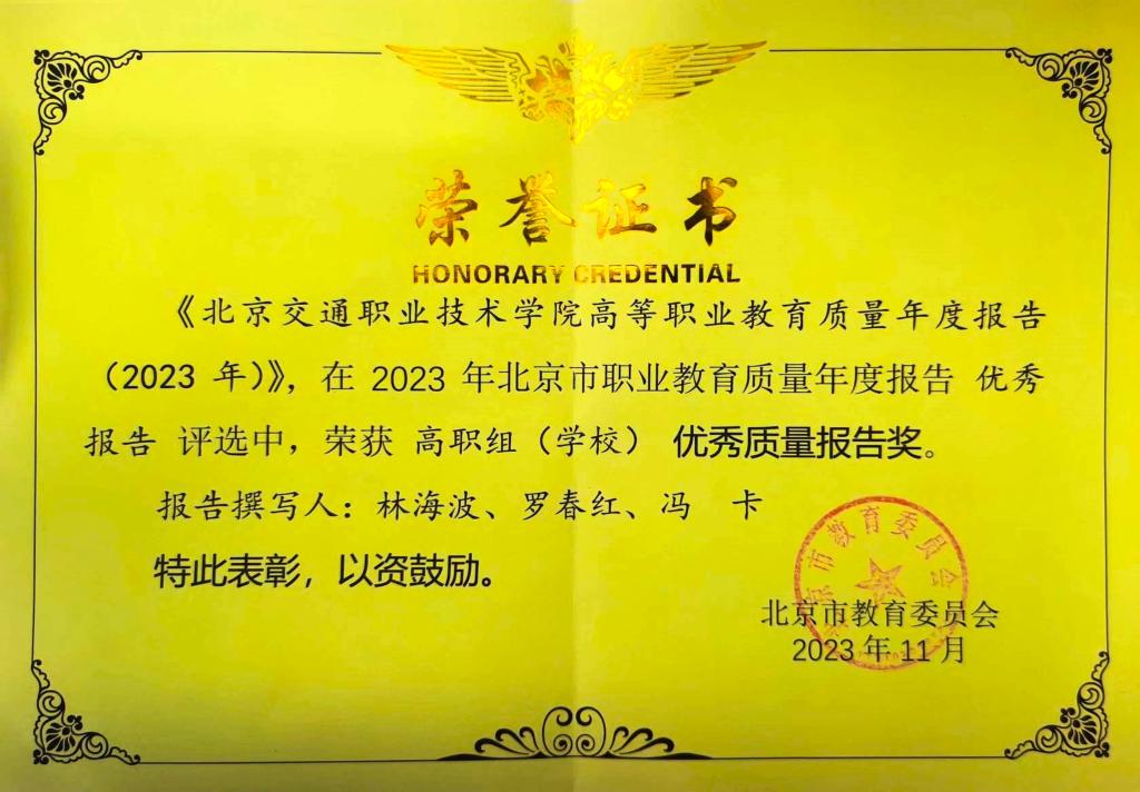 喜报 | 学院获得2023年北京职业教育质量年度报告优秀质量报告奖