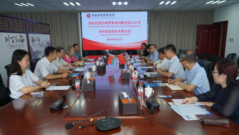 6月12日上午,白俄罗斯共和国波列斯克国立大学校长杜奈一行到威尼斯官网交流访问,双方就推动两校交流与合作相关事宜进行了洽谈。副校长杨国宇出席座谈会,国际交流与合作处处长赵建华、金融与会计学院院长黄良杰等领导参加会议。会议由黄良杰主持。