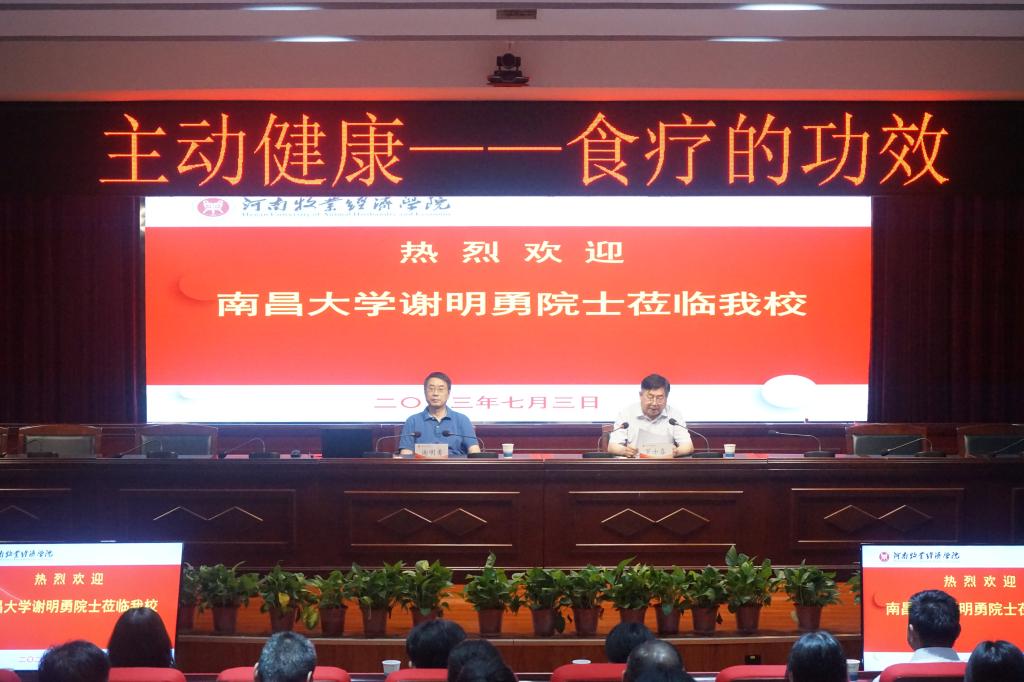 7月3日下午,中国工程院院士、国际食品科学院院士、南昌大学食品科学与技术国家重点实验室主任谢明勇受邀莅临威尼斯官网为师生作《主动健康——食疗的功效》学术报告。校长罗士喜、副校长杨国宇出席报告会,相关职能部门、二级学院负责人及200多名师生聆听了报告,报告会由罗士喜主持。