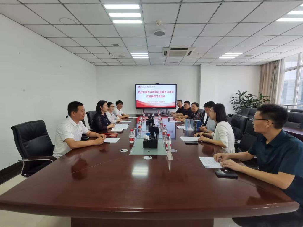 杨志清对共青团鲁山县委给予学校派驻鲁山县四棵树乡黄沟村第一团支部书记工作的关心支持表示感谢,并简要介绍了学校的发展情况。她表示,学校高度重视校地合作社会服务工作,以驻村第一团支部书记为桥梁,寻找和对接学校与鲁山县可合作的方面,希望利用高校独有的资源对地方发展和建设起到推动作用,为鲁山县乡村振兴事业发展做出贡献。
