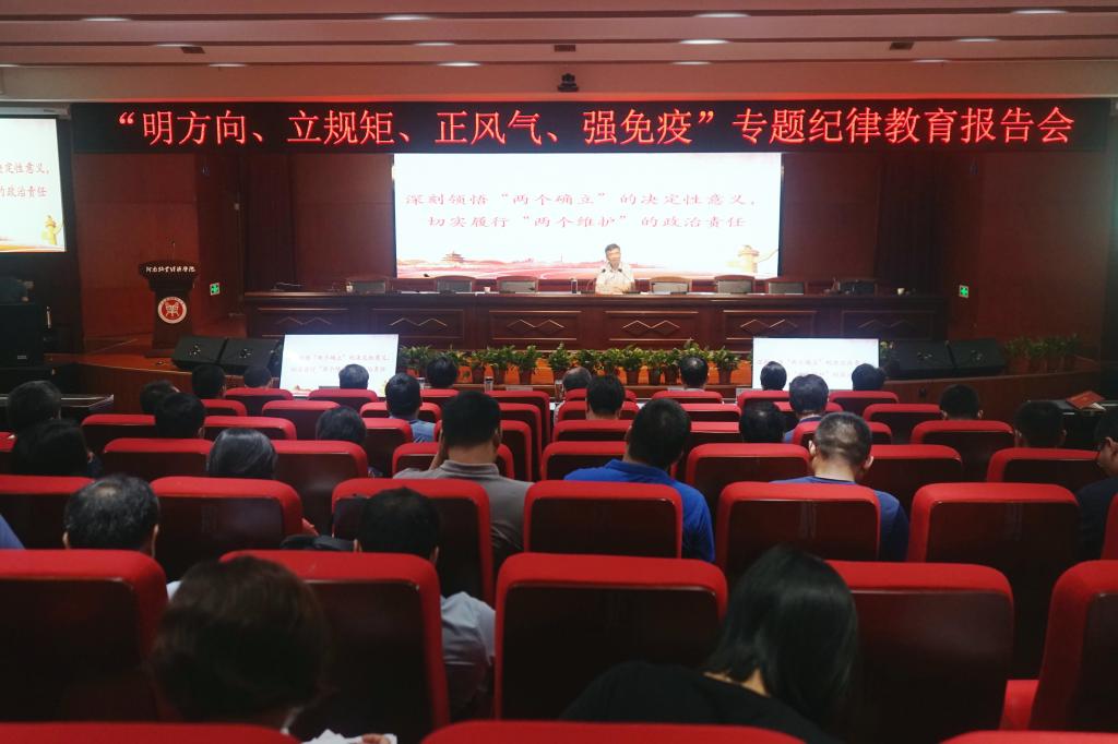 7月6日上午,学校在龙子湖校区一楼报告厅开展深化“廉政谈话面对面”活动,进行集体廉政谈话。校纪委书记、监察专员李中华以深刻领悟“两个确立”的决定性意义,切实履行“两个维护”的政治责任为题作纪律教育专题报告,全校副处级以上党员干部参加会议。