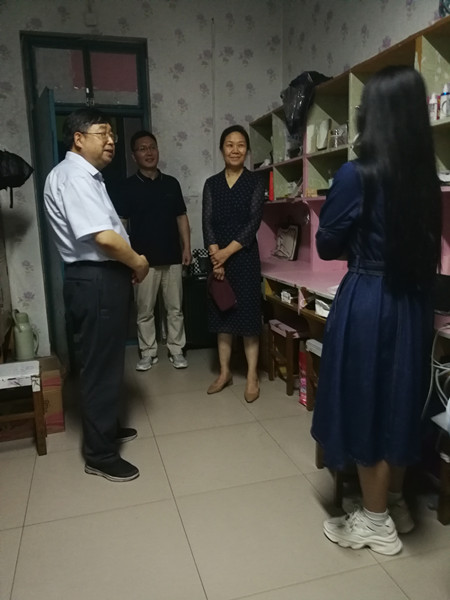 校领导一行先后走访了龙子湖、英才校区学生宿舍、食堂、自习室等场所,与各学院暑期留校考研的学生进行了亲切交谈,表达了学校对他们的关心关怀,并详细询问了同学们的学习和生活情况,嘱咐大家科学合理地安排作息时间,做到劳逸结合,同时提高安全防范意识,主动与家人加强联系,保持信息畅通,遇到问题及时向辅导员老师反馈,以便学校更有针对性地开展好各项服务工作。走访过程中,校领导一行还就学生公寓相关整修改造项目进行了实地查看和现场指导。