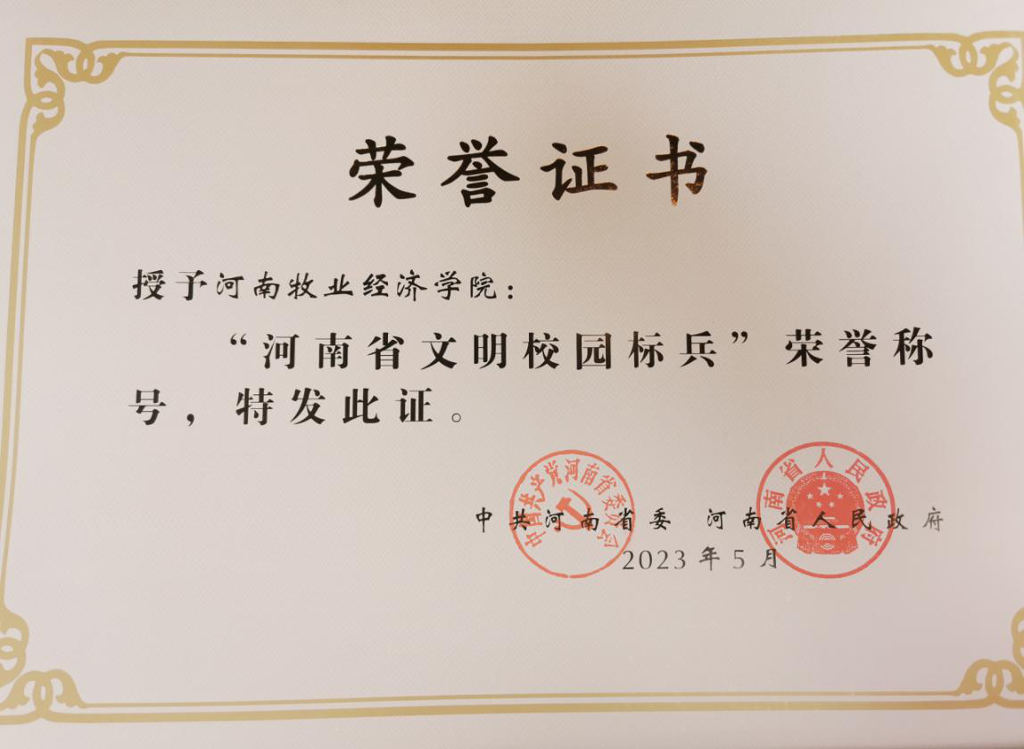 日前,中共河南省委、河南省人民政府下发《关于命名新一届河南省文明城市文明村镇文明单位文明家庭的决定》(豫文[2023]50号),1066vip威尼斯官网被授予“河南省文明校园标兵”荣誉称号。这是学校精神文明建设工作取得的标志性成果。