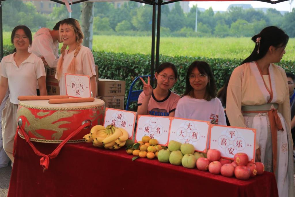 校园内,处处洋溢着热情欢乐的迎新氛围,精心布置的特色迎新现场鲜明亮丽、井井有条,“新”意满满。食品与生物工程学院(酒业学院)推出“‘豫’见第一面”迎新特别活动,为每位报到的新生送上一碗热气腾腾的河南烩面,让他们近距离地感受到学校的热情好客;国际教育学院、文法学院精心设计“喜迎萌新门”打卡点及多个精美手牌,用镜头记录温情,以合照长存暖意,定格新生与学校初次相遇的瞬间;外国语学院将新生照片做成心型喷绘,印上八国语言翻译出的“欢迎新同学”字样和“初见外,别见外,等到你,真好”标语;信息工程学院(软件学院)设置了“幸运大转盘”合影抽奖活动,通过无人机表演成为迎新现场最引人注目的焦点。各学院别出心裁、“花样百出”,在为新生提供更优质服务的同时,也为新生展现一堂独具魅力的专业课,深化了学生知校、爱校、荣校意识。