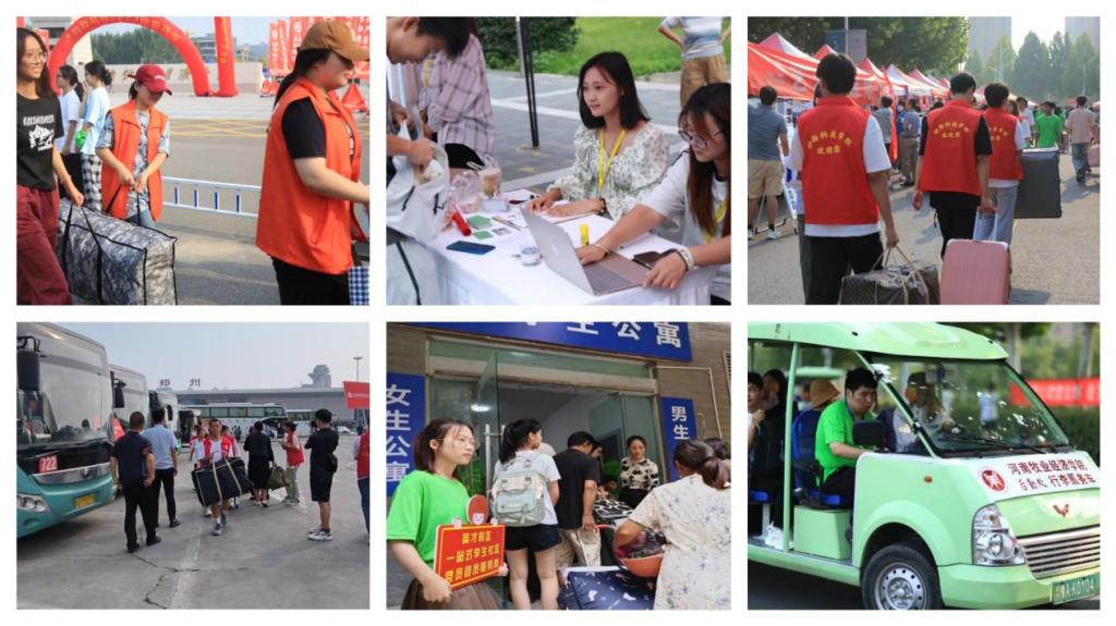 为保障迎新工作安全、高效、有序开展,学校在郑州火车站和高铁东站设置了迎新接待站,安排车辆直达三校区,为新生提供细致周到的服务;校园内,学生志愿者们散布在各个角落,满载行李的爱心摆渡车随处可见,为新生和家长指引方向、搬运行李。2023级新生纷纷表示,一入校就感受到了老师和高年级学长学姐的关心关爱,内心十分温暖。
