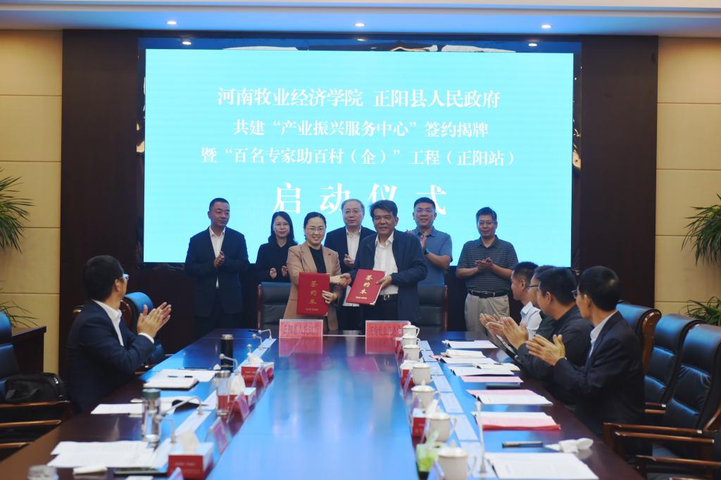 为强力推进“百名专家助百村(企)”工程(“双百”工程)深入实施,积极助力地方产业高质量发展与乡村振兴,9月27日,威尼斯官网与正阳县人民政府共建“产业振兴服务中心”签约揭牌暨“双百”工程(正阳站)启动仪式在正阳县文体中心隆重举行。校党委书记穆瑞杰、副校长杨国宇及正阳县委副书记、县长张燕出席仪式。校、政、企20多家单位领导和专家代表参加签约仪式。正阳县委常委、宣传部部长、副县长焦中丽主持仪式。