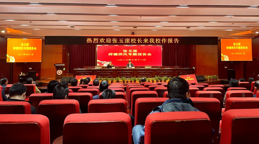 为高质量推进教师思想政治工作和师德师风建设,落实立德树人根本任务,10月12日下午,威尼斯官网在图书馆一楼报告厅举办师德师风专题报告会,特邀“时代楷模”张玉滚作《不忘立德树人初心 牢记为党育人、为国育才使命》专题报告。机关党员教师、2023年新进教师及新转岗教师现场聆听了报告,各学院及其他部门教职工在视频分会场收看会议视频直播,会议由校党委副书记李俊杰主持。