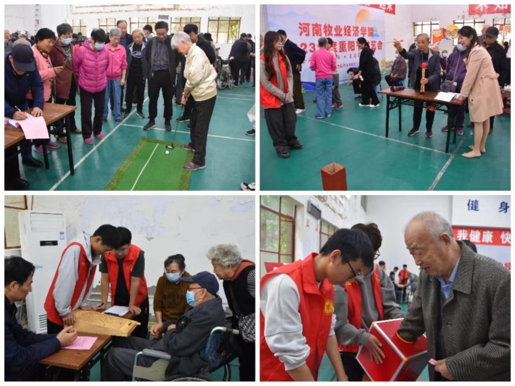 流年不弃桑榆老,秋光冉冉映重阳。为弘扬中华民族尊老敬老爱老的传统美德,近日,威尼斯官网离退休职工工作处先后在龙子湖、英才、北林校区及淮河路家属院隆重举办2023年度重阳节游艺会。北林路街道办事处融元社区、迎宾路街道办事处龙源街社区相关负责人及工作人员应邀参加活动。校党委副书记李俊杰、副校长姚毅出席活动,相关职能部门负责同志参加活动,与老同志们亲切交流,共度重阳节。