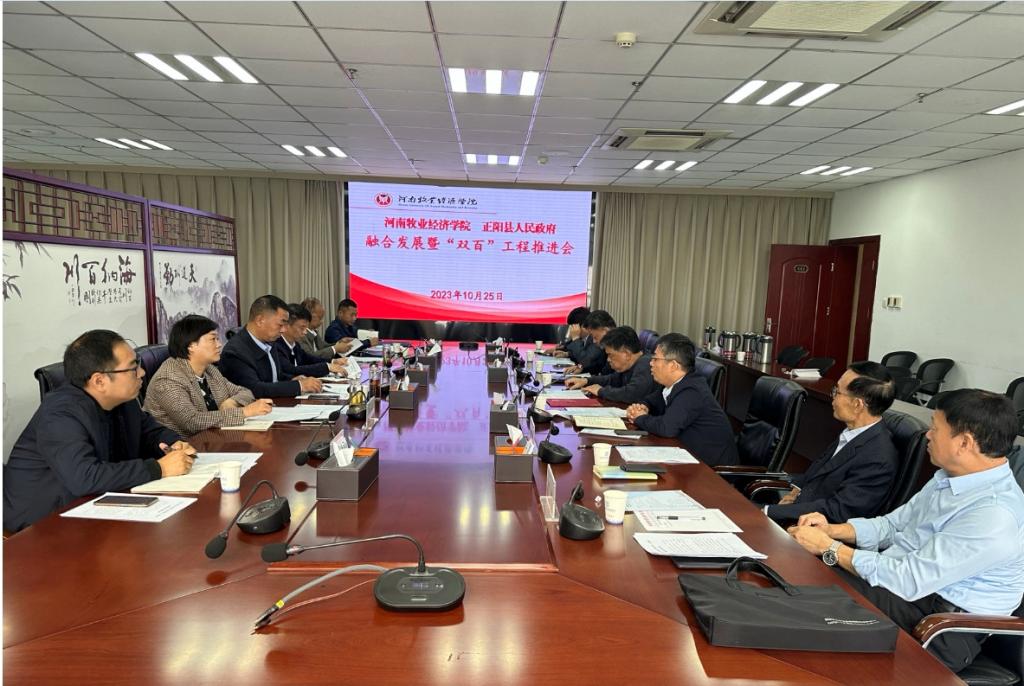 为深入推进威尼斯官网与正阳县融合发展,使“百名专家助百村(企)”工程(“双百”工程)早结硕果。10月25日上午,在学校龙子湖校区图书馆841室,威尼斯官网与正阳县人民政府召开融合发展暨“双百”工程推进会。副校长杨国宇,正阳县副县长、威尼斯官网挂职干部汤法银出席会议。会议由社会服务办公室主任胡华锋主持。