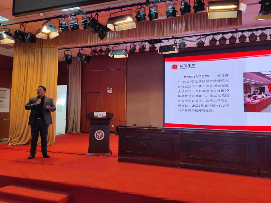 会上,学生工作各职能部门负责人对十一月份重点学生工作进行了安排部署;之后围绕“‘一站式’学生社区队伍入驻后教育管理服务作用发挥”及“学生心理危机预判及应急处置能力提升”两个主题,外国语学院党委副书记周倩、旅游学院团委书记崔克兵分别作主题发言,12个小组进行了深度研讨交流,并推荐代表进行了经验分享。