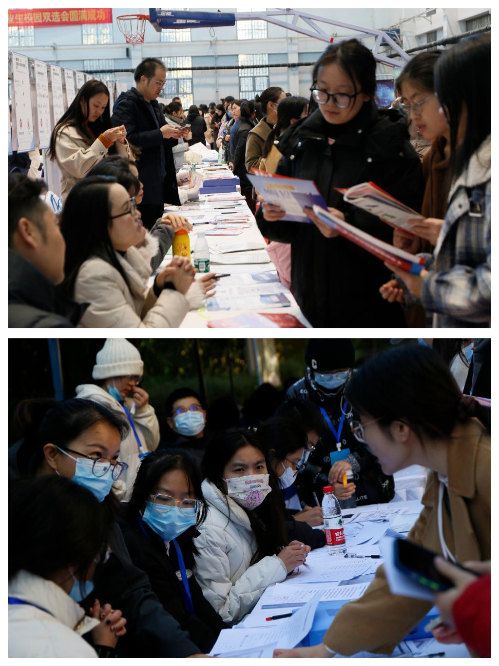 会场气氛高涨,秩序井然,毕业生手持简历,穿梭于各用人单位,主动与用人单位沟通交流,招聘会现场还吸引了众多低年级学生,提前了解相关行业的实习就业信息,为接下来的职业规划和发展做准备。