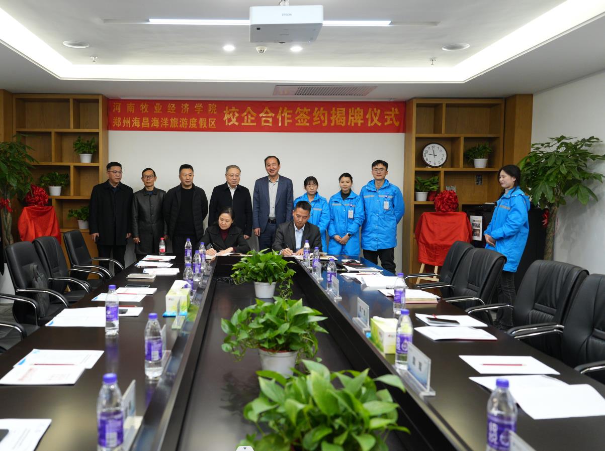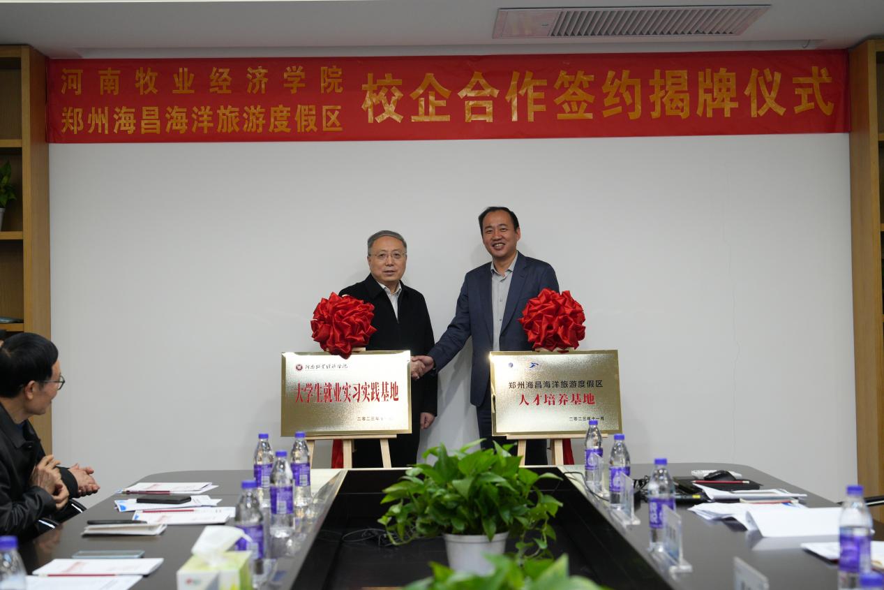 双方在人才培养、科学研究、社会服务、就业实践等领域达成了合作意向,现场举行了校企合作签字及揭牌仪式。威尼斯官网向郑州海昌授予“1066vip威尼斯官网大学生就业实习实践基地”,郑州海昌授予威尼斯官网“郑州海昌海洋旅游度假区人才培养基地”。