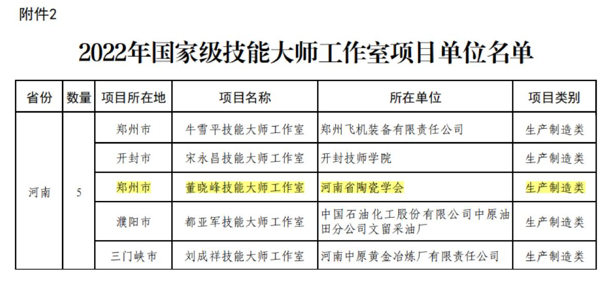 自2018年末以高技能人才引进董晓峰大师以来,在艺术学院陶瓷创研中心的基础上,以及学校各方支持、尤其是在其本人的不懈努力和孜孜以求下,“董晓峰技能大师工作室”先后从市级技能大师工作室、省级技能大师工作室成功晋级为国家级技能大师工作室。该工作室同时是 “河南省劳模和工匠人才创新工作室”和“河南省示范性劳模和工匠人才创新工作室”。2023年成功获批河南省工业和信息化厅“河南省陶瓷工业设计中心”。