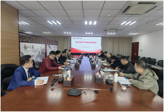 学校发展规划处处长刘建铭、社会服务办公室主任胡华锋以及艺术产业学院企业负责人韩帅星参加座谈。(王国辉 文/图)