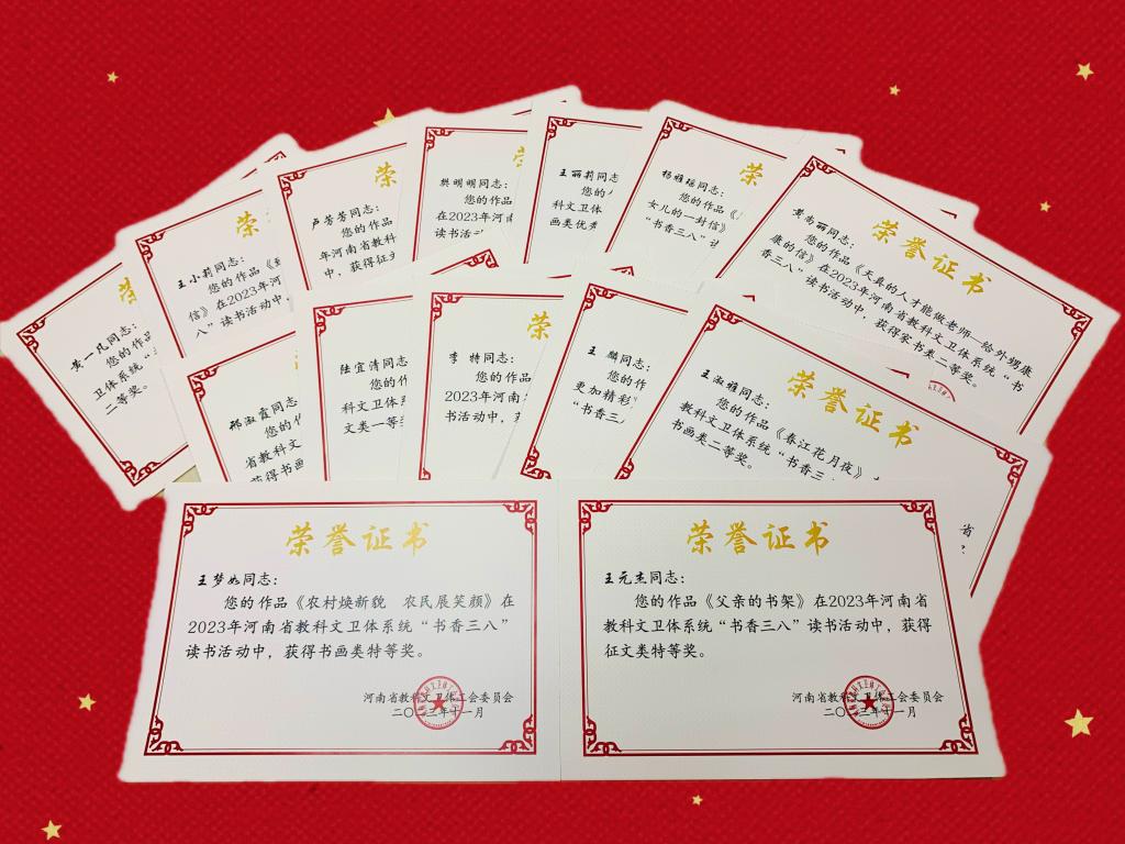 近日,河南省教科文卫体工会下发文件公布了2023年“书香三八”读书活动获奖情况,威尼斯官网14件作品榜上有名,荣获特等奖2件,一等奖3件,二等奖4件,优秀奖5件。