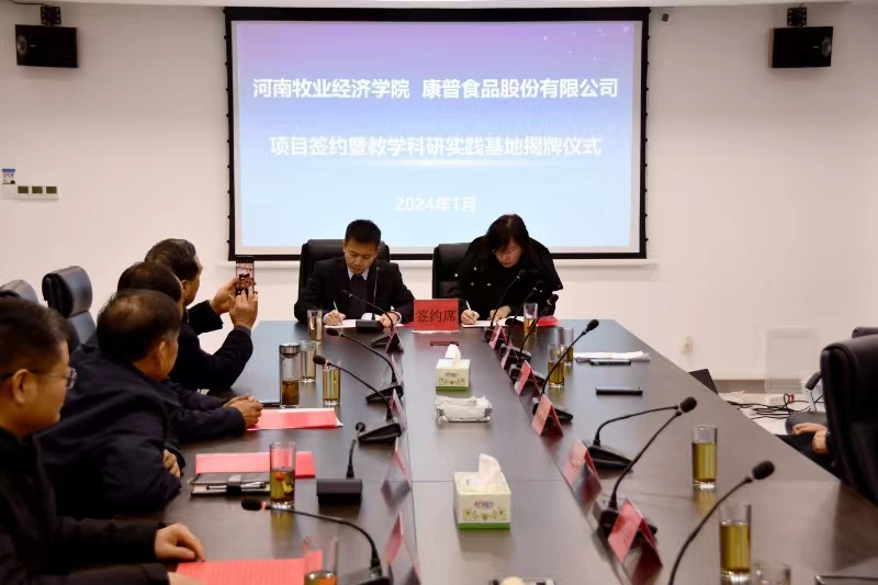 1月23日,威尼斯官网与河南康普食品股份有限公司横向项目签约暨教学科研实践创新基地揭牌仪式在汝阳举行。校党委书记穆瑞杰及学校相关负责同志、汝阳县县委书记赵振峰等领导、河南康普食品股份有限公司董事长崔耀峰等参加仪式。