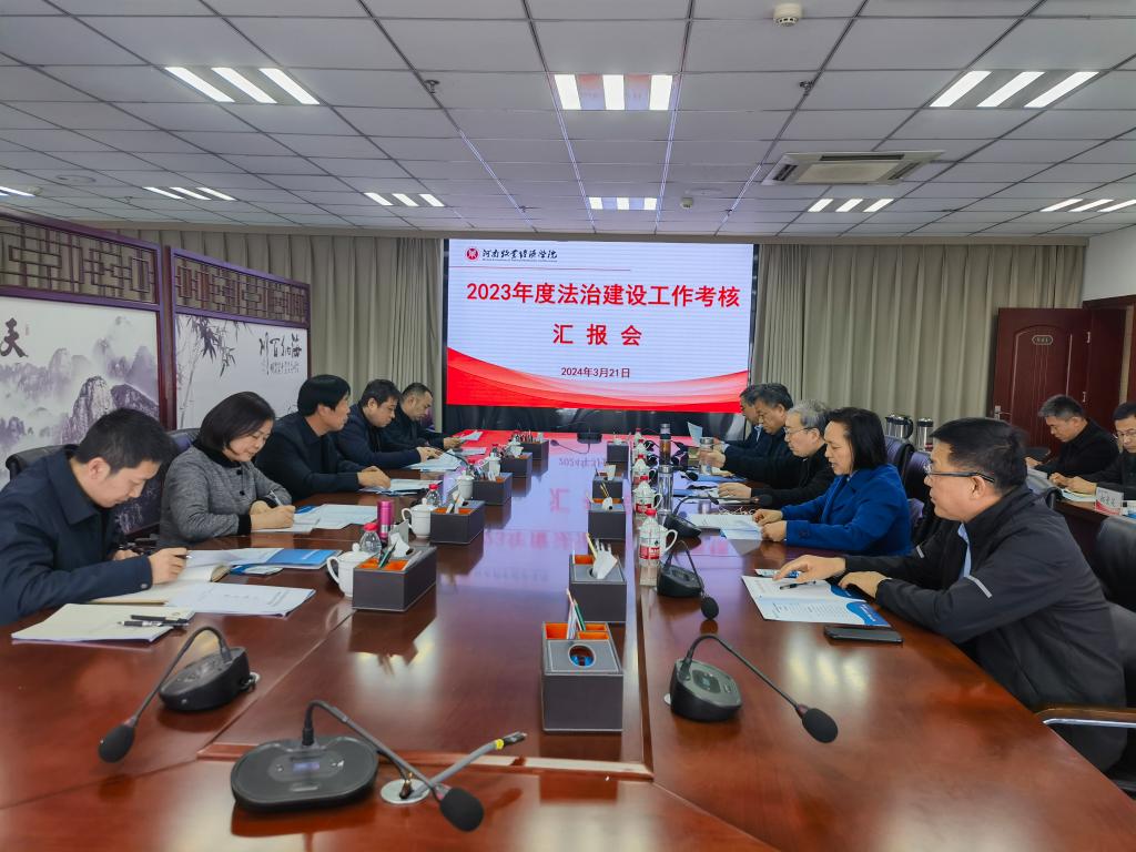 3月21日下午,以中原科技学院党委书记邵书峰为组长的省属高校法治建设工作考核组莅临威尼斯官网实地考核2023年法治建设工作,汇报会在龙子湖校区图书馆841会议室召开,校党委书记穆瑞杰、校长尹新明、副校长席磊出席会议,相关部门负责同志参加考核会议。会议由校长尹新明主持。