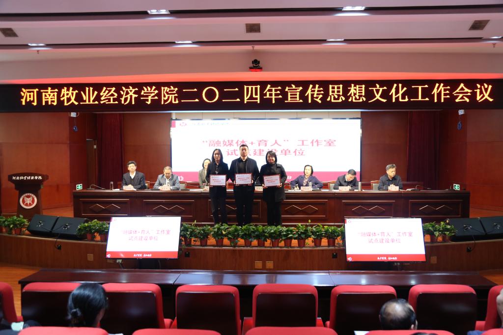 与会领导为“融媒体+育人”工作室试点建设单位授牌