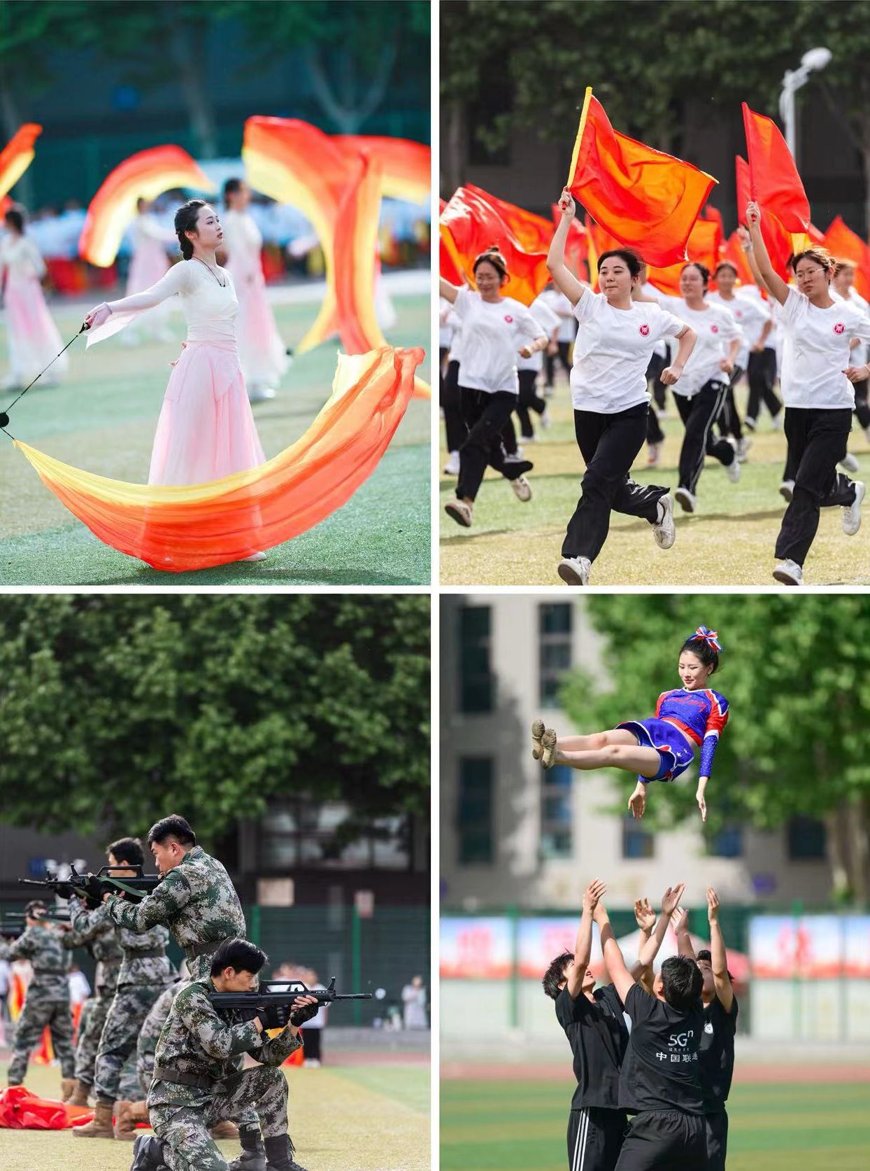 开幕式上,精彩的文体表演分外吸睛。“旗舞飞扬”以中华文化为底蕴,将国旗、校旗与五环元素巧妙地融为一体,缓缓呈现的五环展现出了浓厚的爱国情感与青春活力。最后呈现的“中国75”字样将表演推向高潮,彰显了威尼斯官网师生的爱国情怀。“彩带舞”伴随着优美的旋律闪亮登场,彩带迎风扬,恰似惊鸿舞。她们扬起笑容,舞动彩带,用最美的青春,展示牧经风采。啦啦操表演把现场师生的热情点燃,铿锵的舞步,激昂的节奏,溢满青春与活力,展现出学校师生昂扬向上、奋发进取的精神面貌。