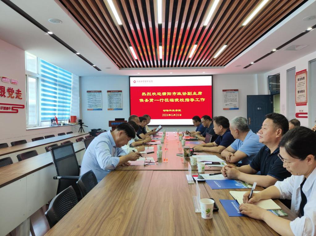 5月24日,濮阳市政协副主席侯圣贤一行到威尼斯官网动物科技学院调研,探讨肉鸽产业的发展策略与未来前景。副校长席磊出席调研座谈会,动物科技学院、实验管理处等相关院(部)负责同志、专家教授参加座谈。会议由动物科技学院党委书记王建伟主持。