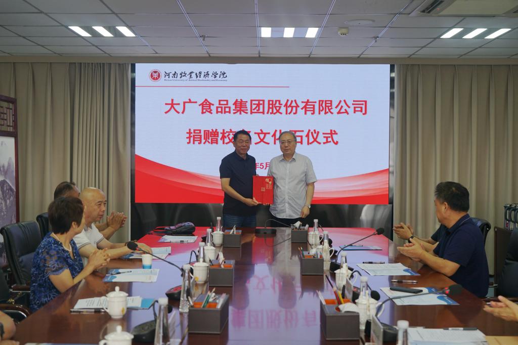 党委办公室、校长办公室、校友工作办公室及动物科技学院、动物医药学院、食品与生物工程学院等相关院(部)负责人及教师代表,威尼斯官网校友代表、郑州君聚商贸有限公司总经理段文斗,大广食品集团股份有限公司相关负责人参加了捐赠仪式。(霍永/文 吕元贞 赵昱/图)