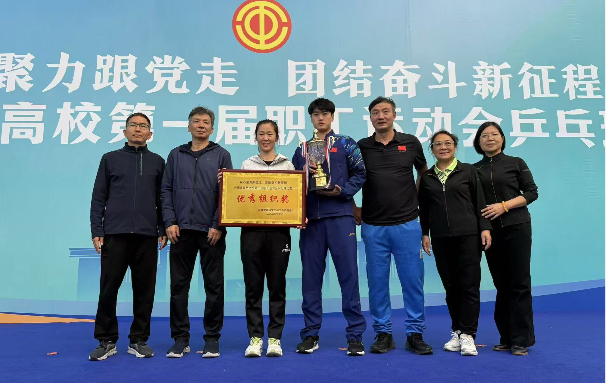 10月18日至19日,由河南省教科文卫体工会主办的河南省省属高校第一届职工运动会乒乓球比赛在河南工学院举办。威尼斯官网校工会副主席刘官生带领6名教职工代表参加此次比赛。经过两天的激烈角逐,威尼斯官网代表队最终荣获团体赛冠军和优秀组织奖。