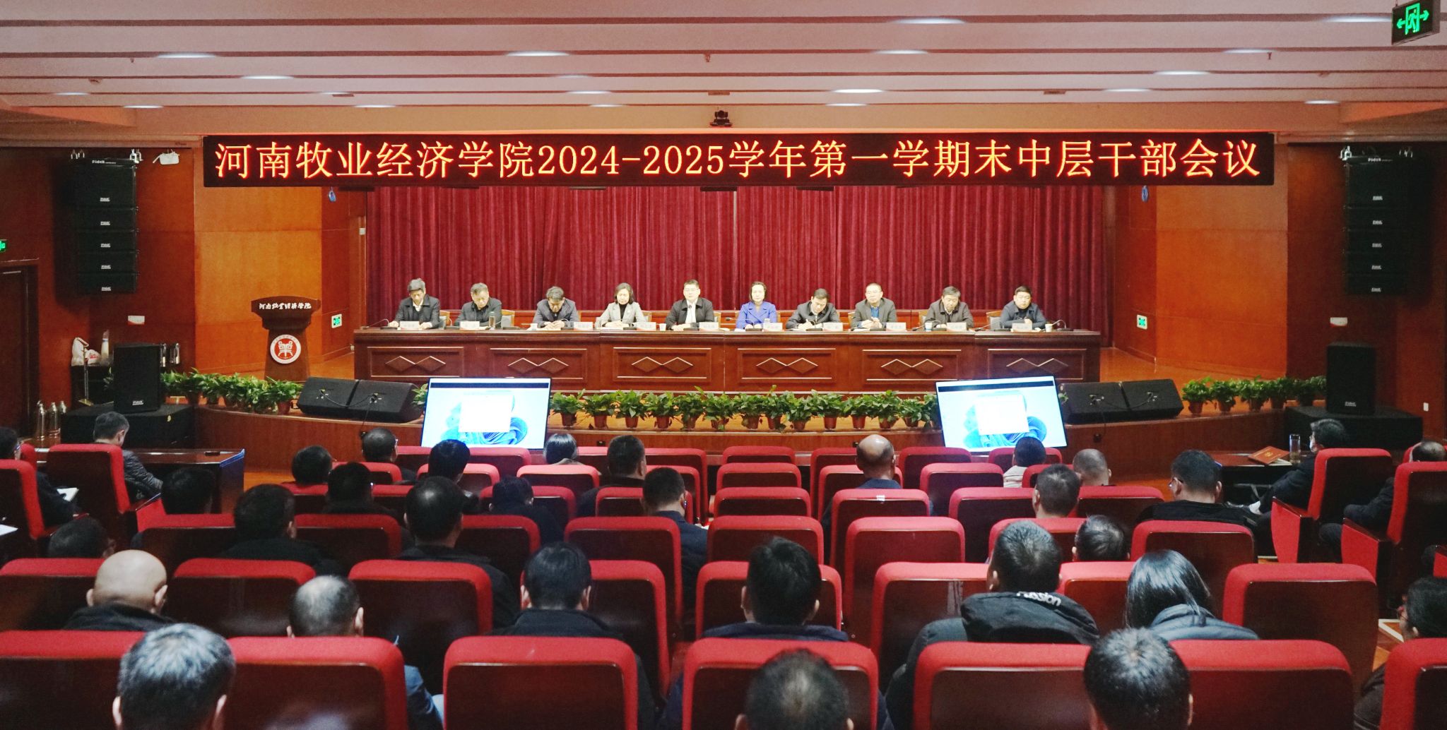 1月15日,学校在龙子湖校区图书馆一楼报告厅召开2024-2025学年第一学期末中层干部会议。全体校领导出席会议,全校副处级以上干部参加会议。会议由校党委副书记杨志清主持。