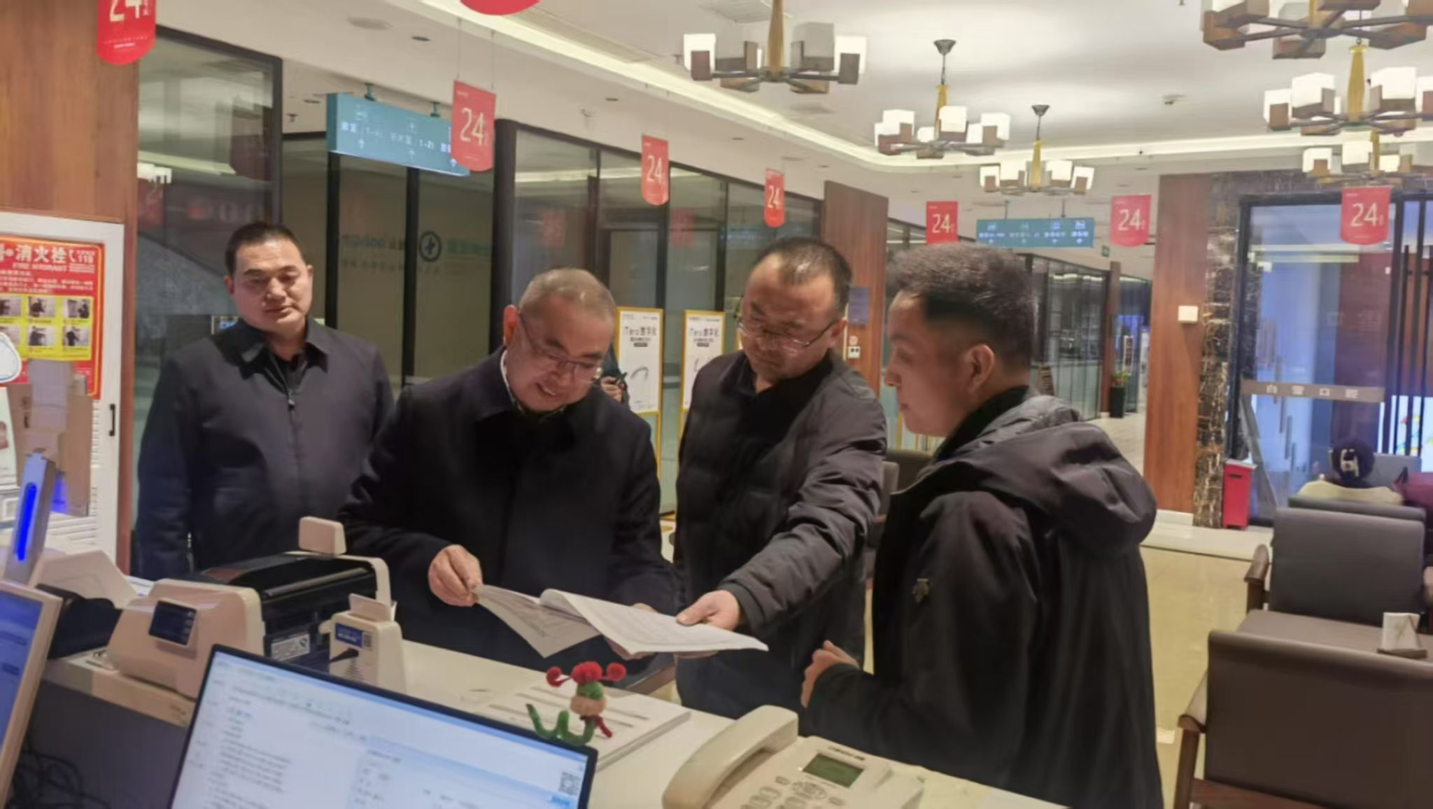 黄良杰一行通过现场查看、听取汇报等方式,详细了解公司、附属动物医院、入驻企业、商户安全生产责任制落实、应急防范措施、消防安全隐患排查等工作落实情况。实地查看了商户经营、办公以及装修施工等场所;查看电气线路敷设是否规范,安全出口和疏散通道是否畅通,灭火设施器材是否完整好用等情况。提醒商户在春节歇业前要关闭电器设备,切断电源,关紧门窗;要求公司假期值班管理人员要加强巡逻、排查,及时发现和消除安全隐患。