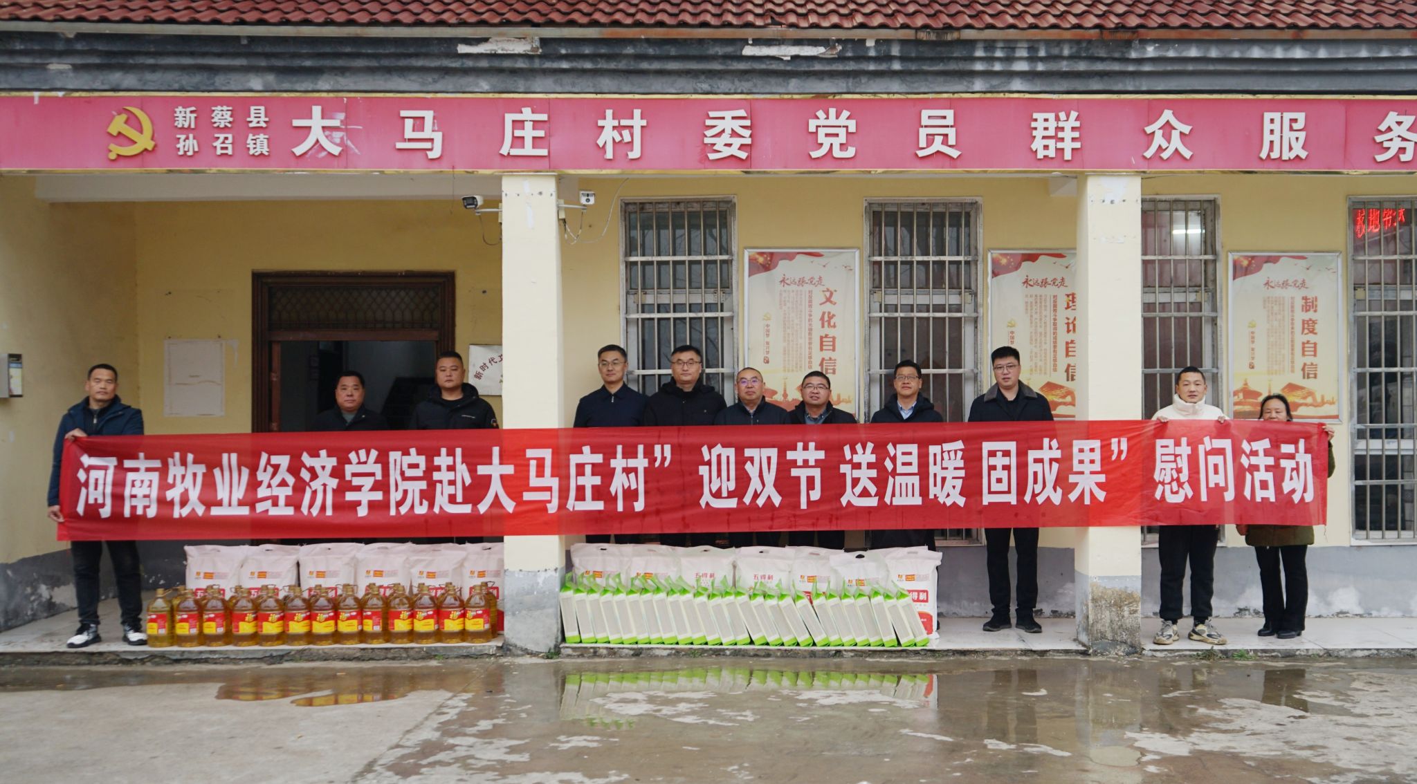 1月23日,副校长黄良杰在组织部、宣传部等部门负责同志陪同下,冒雨赴学校定点帮扶村——驻马店市新蔡县孙召镇大马庄村调研乡村振兴工作、看望省派驻村“第一书记”、走访慰问贫困群众。新蔡县孙召镇党委书记陈东伟、党委副书记陈梁、大马庄村党支部书记马明明等陪同调研慰问。