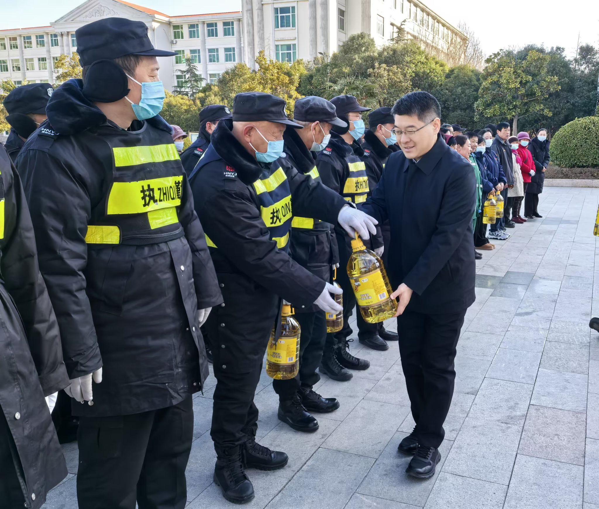 金蛇起舞,万象更新。1月28日上午,党委书记刘志伟、校长尹新明、副校长席磊带领相关部门负责人,分赴三校区看望、慰问春节期间坚守工作岗位的一线值班人员,向大家致以新春的诚挚问候和美好祝福。