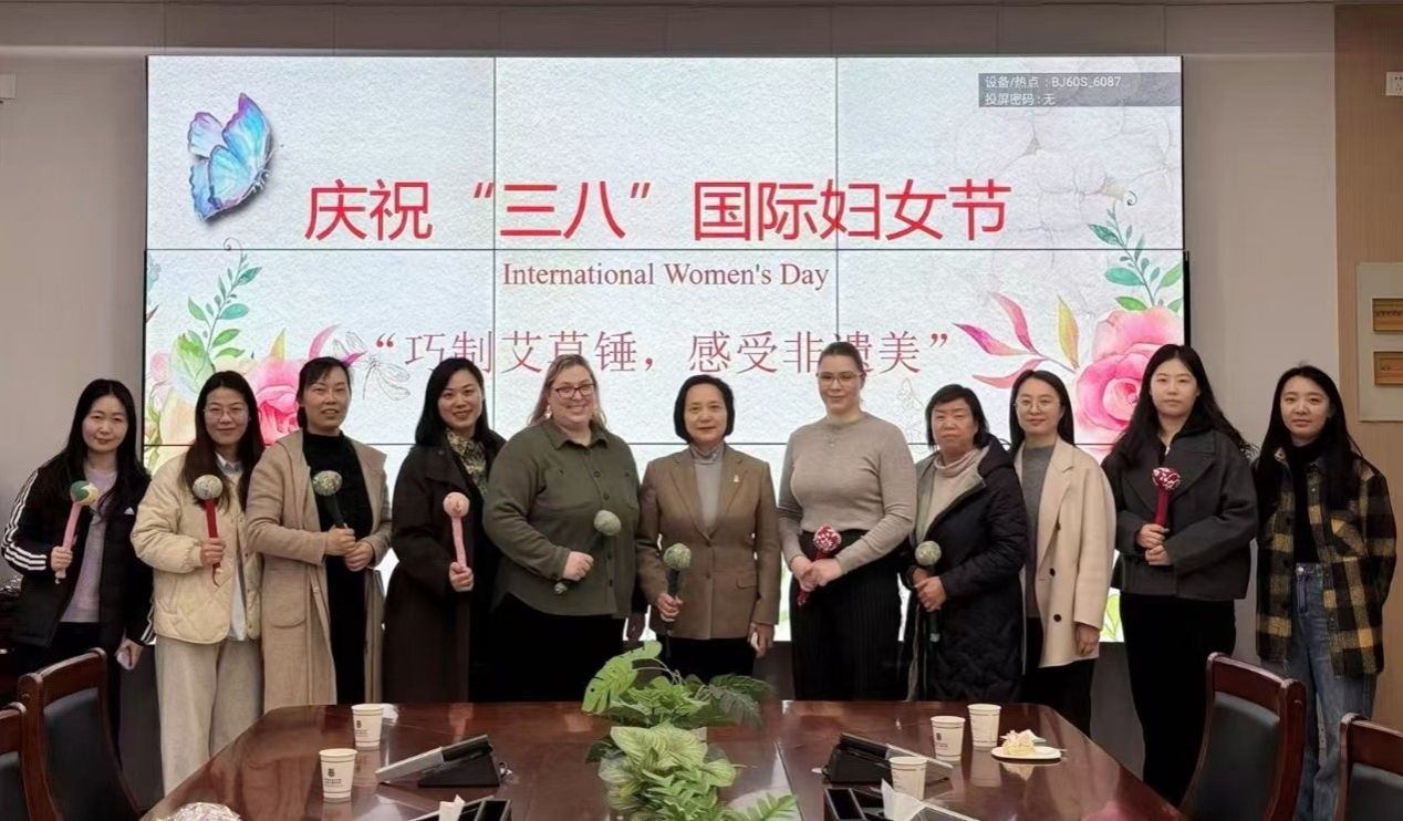 阳春布德泽,万物生光辉。为庆祝第115个“三八”国际劳动妇女节,丰富女教职工精神文化生活,传承中华优秀传统文化,3月7日上午,卡洛理工国际学院分工会精心举办了一场别开生面的“巧制艾草锤,感受非遗美”三八妇女节主题活动。活动特别邀请到爱尔兰东南理工大学Virginia Brennan和Marta Mroczkowska两位外籍老师共赴节日之约。