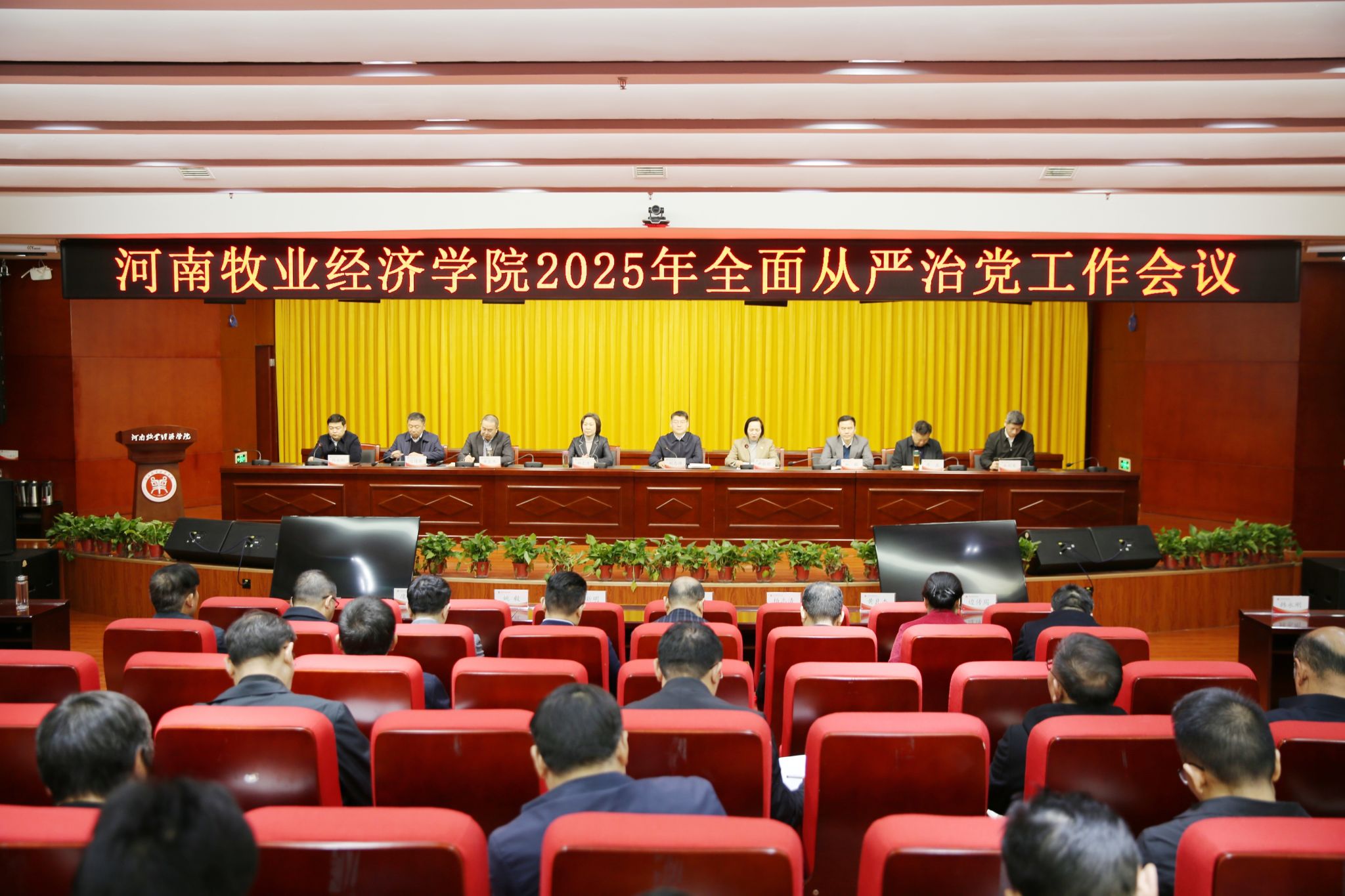 3月20日上午,学校在龙子湖校区图书馆一楼报告厅召开2025年全面从严治党工作会议,校领导刘志伟、尹新明、杨志清、姚毅、黄良杰、席磊、边传周、岳彩军、韩永刚出席会议,全校副处级以上干部参加会议。会议由党委副书记、校长尹新明主持。