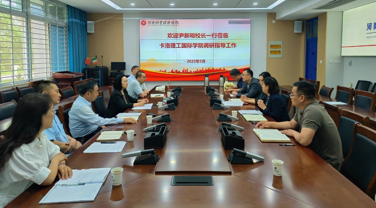 5月8日,校长尹新明,副校长黄良杰、边传周一行到卡洛理工国际学院调研指导工作。