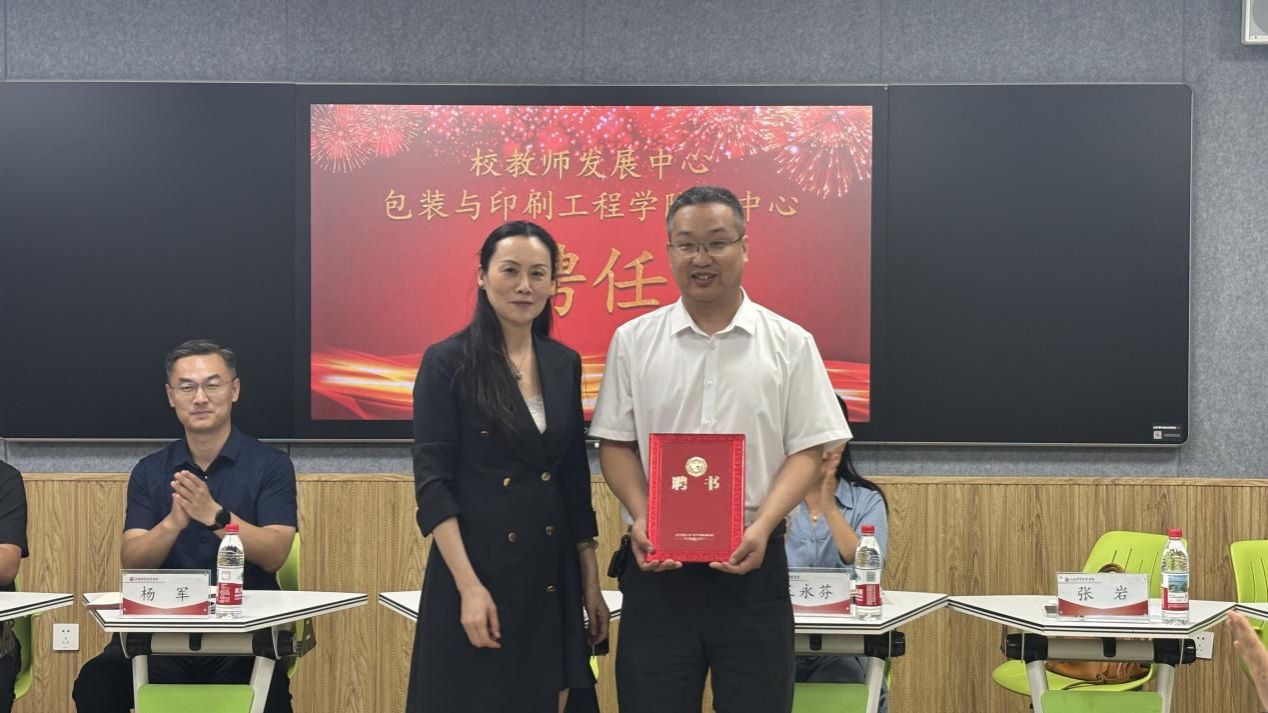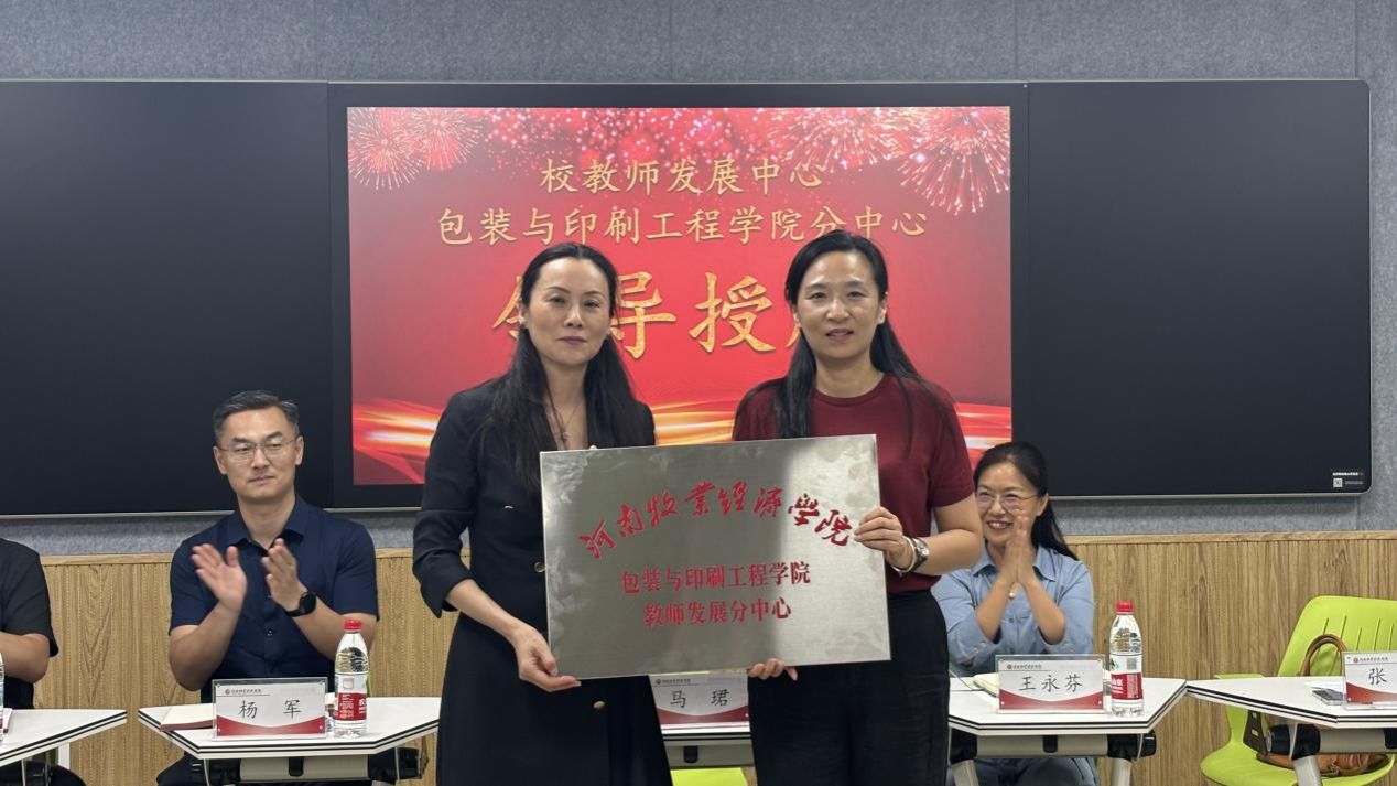 仪式上,马珺为包装与印刷工程学院教师发展分中心授牌,并向教师发展分中心负责人、包装与印刷工程学院副院长苗红涛颁发聘书。马珺表示,包装与印刷工程学院教师发展分中心是学校成立的首个院级教师发展服务中心,是教师能力培养融合学科特色的新举措,标志着威尼斯官网教师发展工作迈出了新步伐,开启了教师发展校院协同联动的先河,将会实现校院教师发展工作的双向奔赴与协同联动,打通教师学习培训与教学实践的最后一公里。她希望首个分中心根据自身学科专业特点和发展需求,做好顶层设计和规划,构建形式多样的特色化教师发展活动,营造学院良好的教师发展生态,为学校教师发展分中心建设树典范。