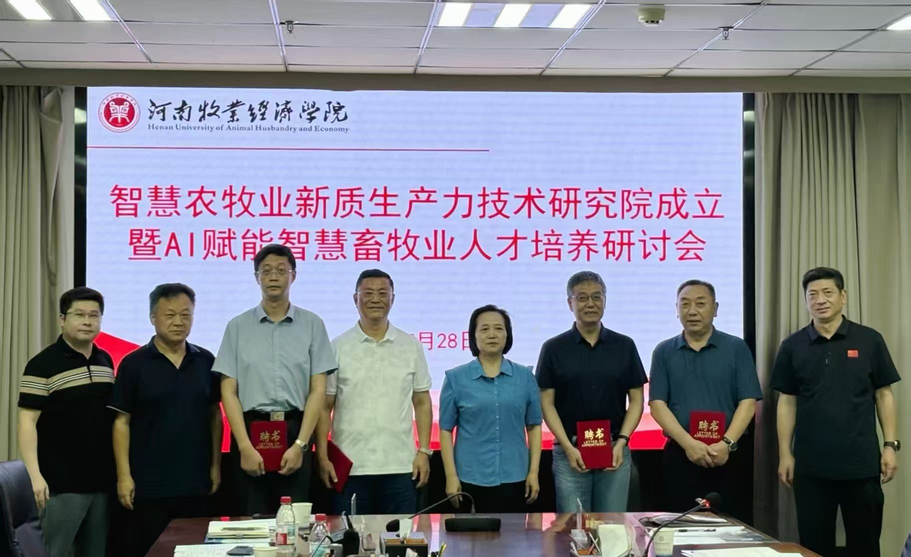 尹新明与黄荣瑜共同为智慧农牧业新质生产力技术研究院揭牌,并为胡传平、冯伟国、申金和徐超颁发智慧农牧业新质生产力技术研究院顾问聘书。