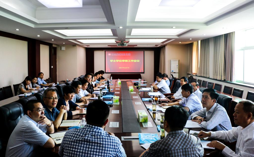 6月7日,学校在英才校区行政楼五楼会议室召开2017届普通本科毕业生学士学位审核工作会议。校领导李明中、曾照烨、张卫宪出席会议,各学位评定委员会委员、相关学院负责人列席会议。会议由校党委副书记、副校长曾照烨主持。