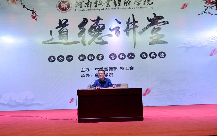 本次道德讲堂由党委宣传部、校工会主办,会计学院承办,形式创新、内容丰富,不仅穿插有道德歌曲、小品、诗朗诵等喜闻乐见的节目,同时还增加了师生共唱《公民道德歌》、共同宣誓等互动环节,让在场师生在和谐友爱的氛围中用心感悟道德的力量。(会计学院 顾自卫/文 杨园雅/图)