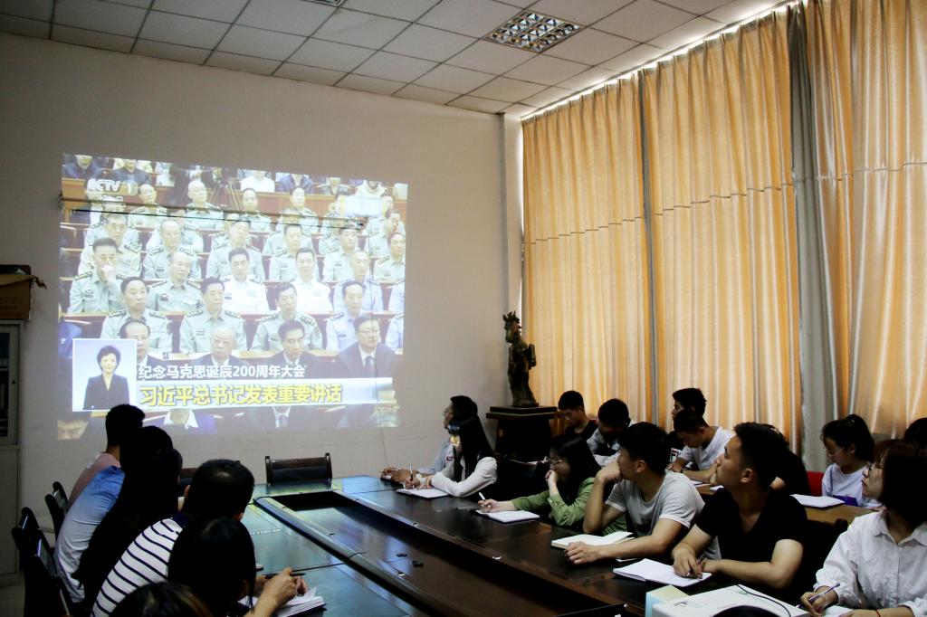 5月4日,纪念马克思诞辰200周年大会在人民大会堂举行。中共中央总书记、国家主席、中央军委主席习近平出席大会并发表重要讲话。 校领导、党委各职能部门负责同志,在龙子湖校区图书馆910会议室集中收看直播。