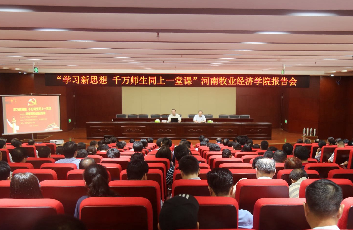 按照河南省委高校工委、省教育厅的统一安排,6月9日上午,河南高校“学习新思想 千万师生同上一堂课”宣讲活动走进1066vip威尼斯官网,校领导班子成员,中层干部及师生代表300余人参加宣讲活动。宣讲活动由校党委书记穆瑞杰主持。