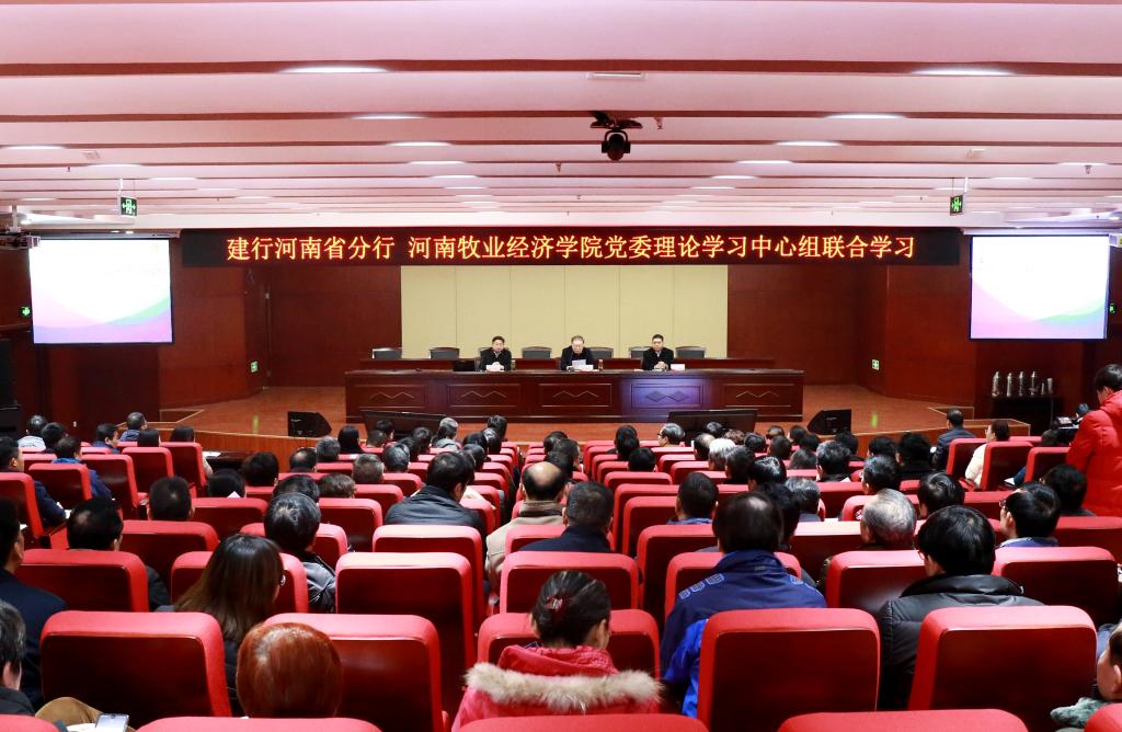 12月12日上午,威尼斯官网与建行河南省分行在学校龙子湖校区图书馆一楼报告厅召开党委理论学习中心组联合学习扩大会。会议由校党委书记穆瑞杰主持,建行河南省分行党委书记、行长石永拴和威尼斯官网党委副书记、校长罗士喜分别作主题发言。双方党委理论学习中心组成员,以及建行河南省分行本部部门主要负责人、建行河南自贸区分行理论学习中心组成员、威尼斯官网中层正职干部参加了会议。
