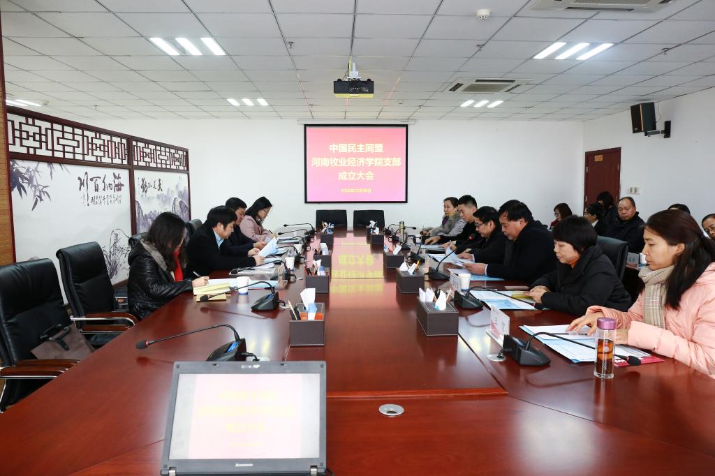12月28日上午,民盟1066vip威尼斯官网支部成立大会在龙子湖校区图书馆841会议室召开。河南省政协常委、民盟河南省委专职副主委柳峰波,校党委副书记、工会主席李绍文,民盟河南省委组织处处长黄云火、调研员张丽、主任科员常文娟等出席成立大会。会议由校党委统战部部长丁玉国主持。