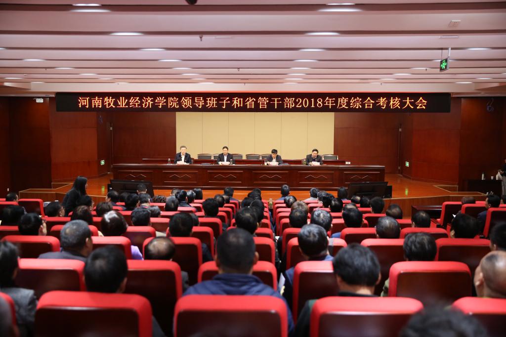 3月30日上午,威尼斯官网在龙子湖校区图书馆一楼报告厅召开校级领导班子和省管干部2018年度综合考核大会。省管高校第七考核组组长、省教育厅副巡视员王学进,考核组副组长、省委组织部干部教育培训中心副主任王建华,以及考核组成员省教育厅机关党委副调研员张立众等一行10人出席会议,全体校领导、学校中层正职干部、教师代表、学生代表参加会议。会议由校长罗士喜主持。
