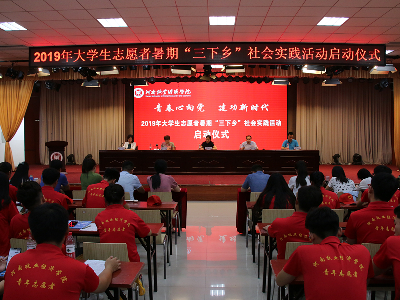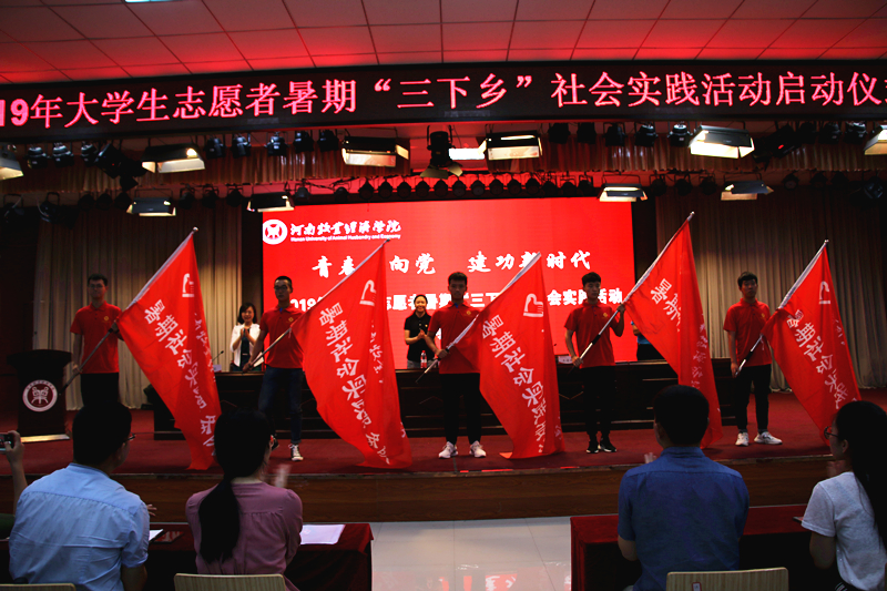 启动仪式上,与会领导为2019年暑期社会实践重点服务队授旗,宣传部部长王凌彬宣读了《关于开展2019年大学生志愿者暑期“三下乡”社会实践活动的通知》,学工部部长张广芝对社会实践活动组队情况进行了通报,教师代表陶莎莎、学生代表张路平分别作了发言。