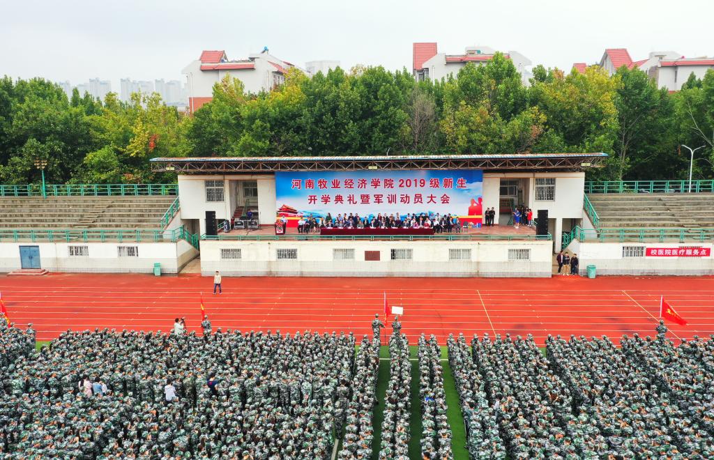 开学典礼上校友代表河南华纳置业股份有限公司董事长何小平、河南省谊发牧业有限责任公司董事长原泉水、教师代表金融与会计学院副教授宋晓薇、动物医药学院副教授皇甫和平、新生代表文法学院郜逢源、能源与智能工程学院许可依次发言。(学生处 褚祺琪/文 宣传部 吴义辉 翟浩辰/图)