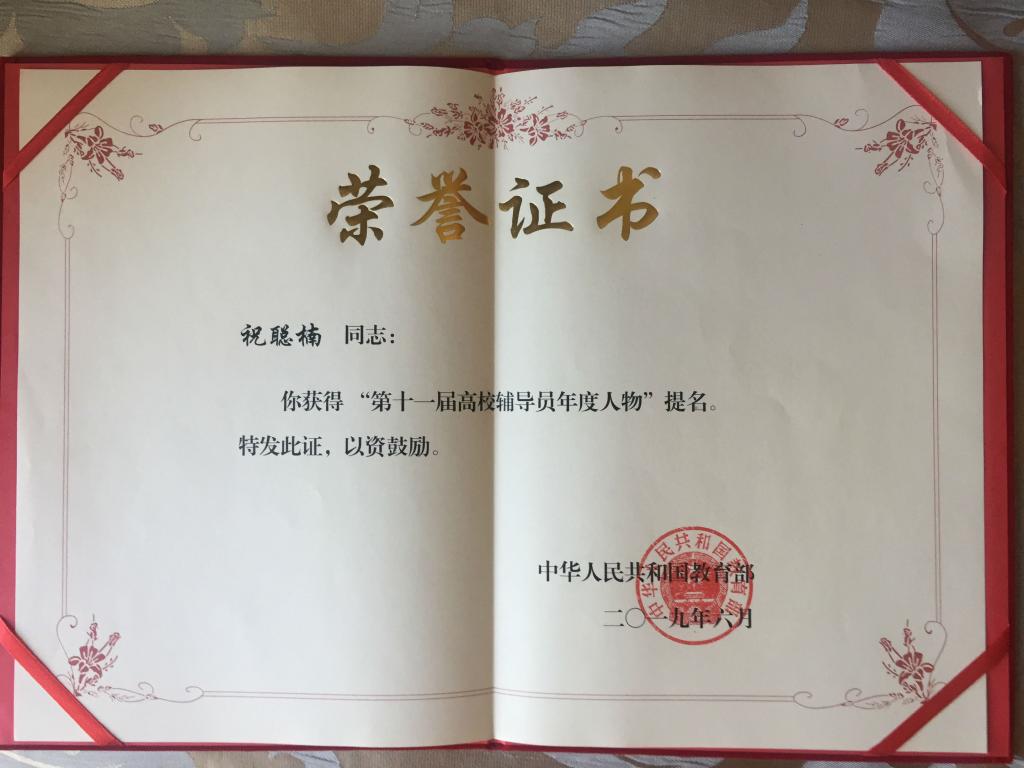 第十一届高校辅导员“年度人物”推选展示活动由教育部主办,中国高等教育学会辅导员工作研究分会和中国教育报承办,光明日报、新华网和中国大学生在线提供网络支持。活动于2019年4月3日正式启动,经过匿名通讯评审、现场答辩和实地考察,最终从全国将近20万名辅导员中推选出第十一届高校辅导员“年度人物”10人、第十一届高校辅导员“年度人物”提名40人、第十一届高校辅导员“年度人物”入围149人。