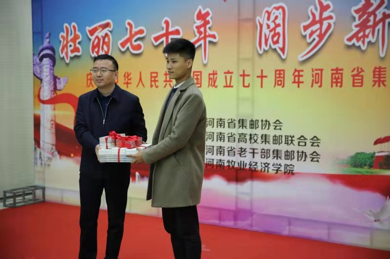校党委副书记、校长罗士喜在开幕仪式上对各位来宾的到来表示热烈的欢迎。他介绍了威尼斯官网与祖国共奋进的创业史、发展史,高度评价了集邮巡展的政治意义和文化意义。葛纪谦会长致辞,勉励威尼斯官网青年在壮丽新时代中积极进取,阔步向前。随后杨汉振会长、中国邮政集团公司河南省分公司集邮与文化传媒部总经理胡庆魁分别在仪式上向威尼斯官网师生代表赠送了系列红色邮品,威尼斯官网党委书记、河南省高校集邮联合会常务副会长穆瑞杰宣布集邮巡展开幕。