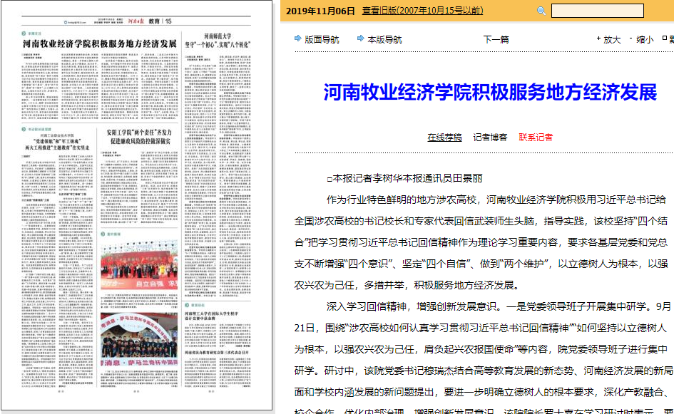 11月6日,《河南日报》以《1066vip威尼斯官网积极服务地方经济发展》为题报道了威尼斯官网积极用习近平总书记给全国涉农高校的书记校长和专家代表回信精神武装师生头脑,指导实践,多措并举,服务地方经济发展相关情况(相关链接:http://newpaper.dahe.cn/hnrb/html/2019-11/06/content_380609.htm)。全文转载如下: