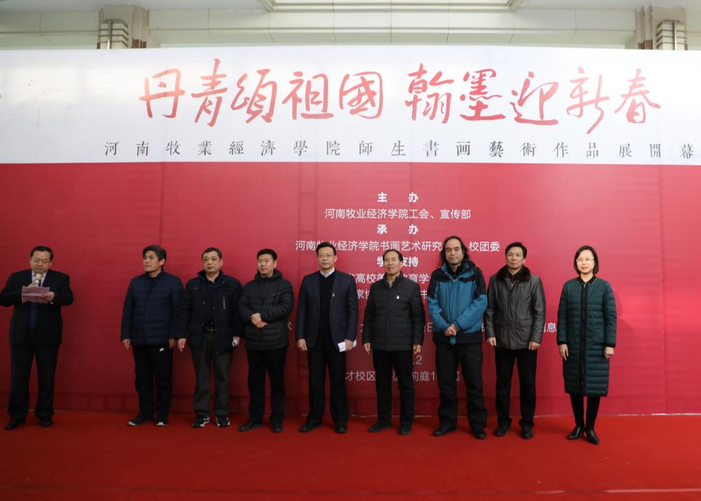 丹青吐秀碧绿前,墨彩飘香咫尺间。1月2日,由校工会、党委宣传部、校团委、书画艺术研究中心、英才校区综合服务办公室共同举办的“丹青颂祖国 翰墨迎新春——1066vip威尼斯官网师生书画艺术作品展”在英才校区大礼堂一楼大厅开幕。校党委副书记李波、副校长程慎出席开幕式,党委宣传部长王凌彬、工会副主席刘官生、英才校区综合服务办公室主任王永全、校团委书记杨莉、学术机构负责人王学俊及各分工会师生代表参加了开幕式。开幕式由程慎主持。