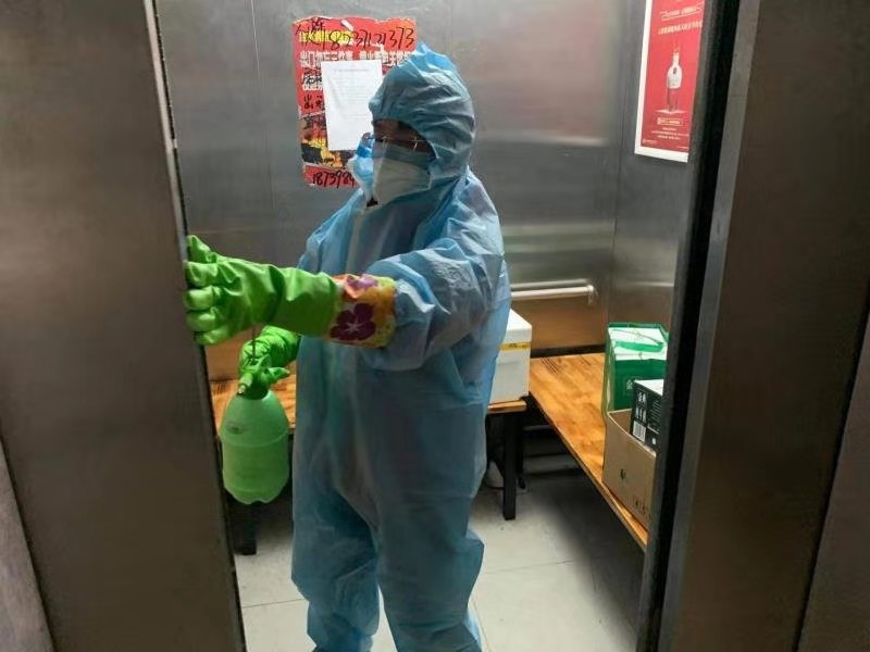 随着疫情防控工作越来越严峻,一线的物业人员、安保人员的压力越来越大。每个人都是连轴转,详细的登记着每个进出人员的信息,进入楼宇逐户统计住户往来信息,背着喷壶将消毒液喷洒在每一片公共区域。他们一遍遍地重复着"家里有从疫区回来的人吗?","有发烧症状吗?"这几句话,嗓音也慢慢沙哑;一次又一次的抬起喷壶的压杆,喷洒的消毒液一遍又一遍的洒满学校和教师生活园区的每个角落。这样的情况,钟辉等老师看在眼里,也深切感受到物业工作人员超负荷的工作压力。他们的家人也有在社区、街道办事处工作的,每天奔波在疫情防控一线,看着同事和家人每天忙碌的身影,他们说:我们自己的生活家园现在遇到了被病毒浸染的危险,我的同事们奋战在疫情防控一线,我们决不能袖手旁观。